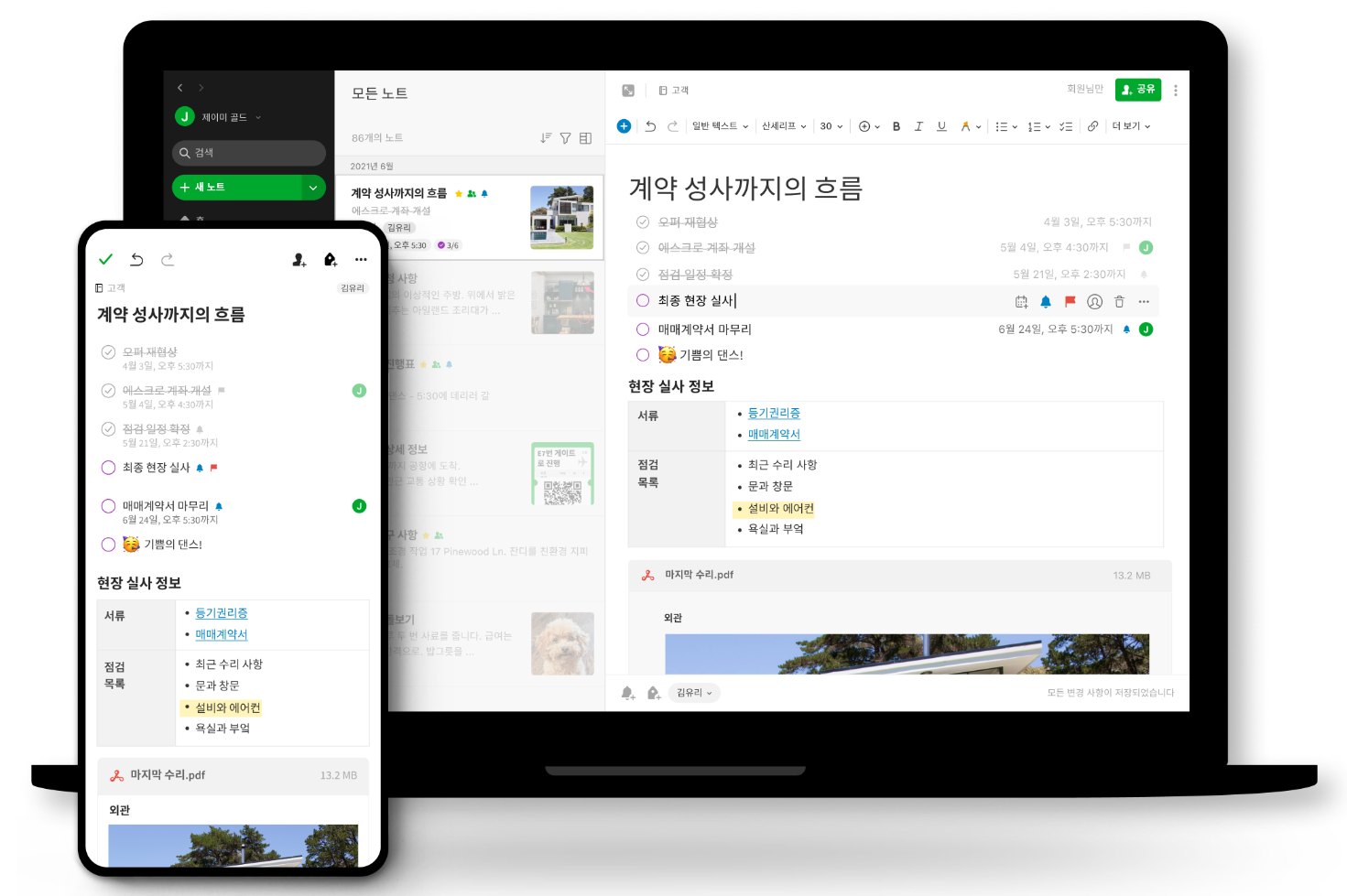 3) 다양한 파일을 첨부할수 있고, 클라우드와 동기화가 가능합니다.